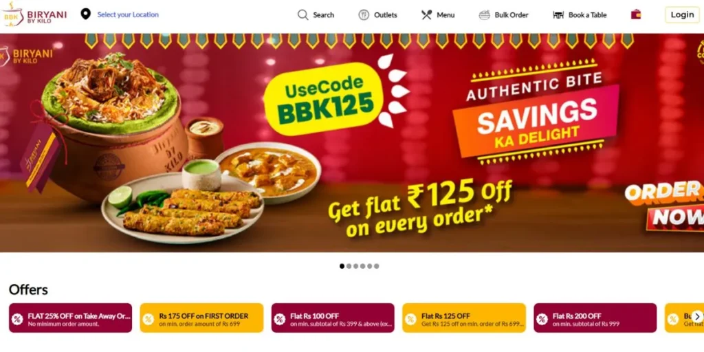 Its unique cooking technique—preparing biryani in earthen handis—creates a distinctive taste profile that sets it apart in a competitive market. By using quality ingredients and authentic recipes, Biryani By Kilo appeals strongly to the premium segment, building high customer loyalty and successfully expanding into complementary offerings like kebabs and desserts.